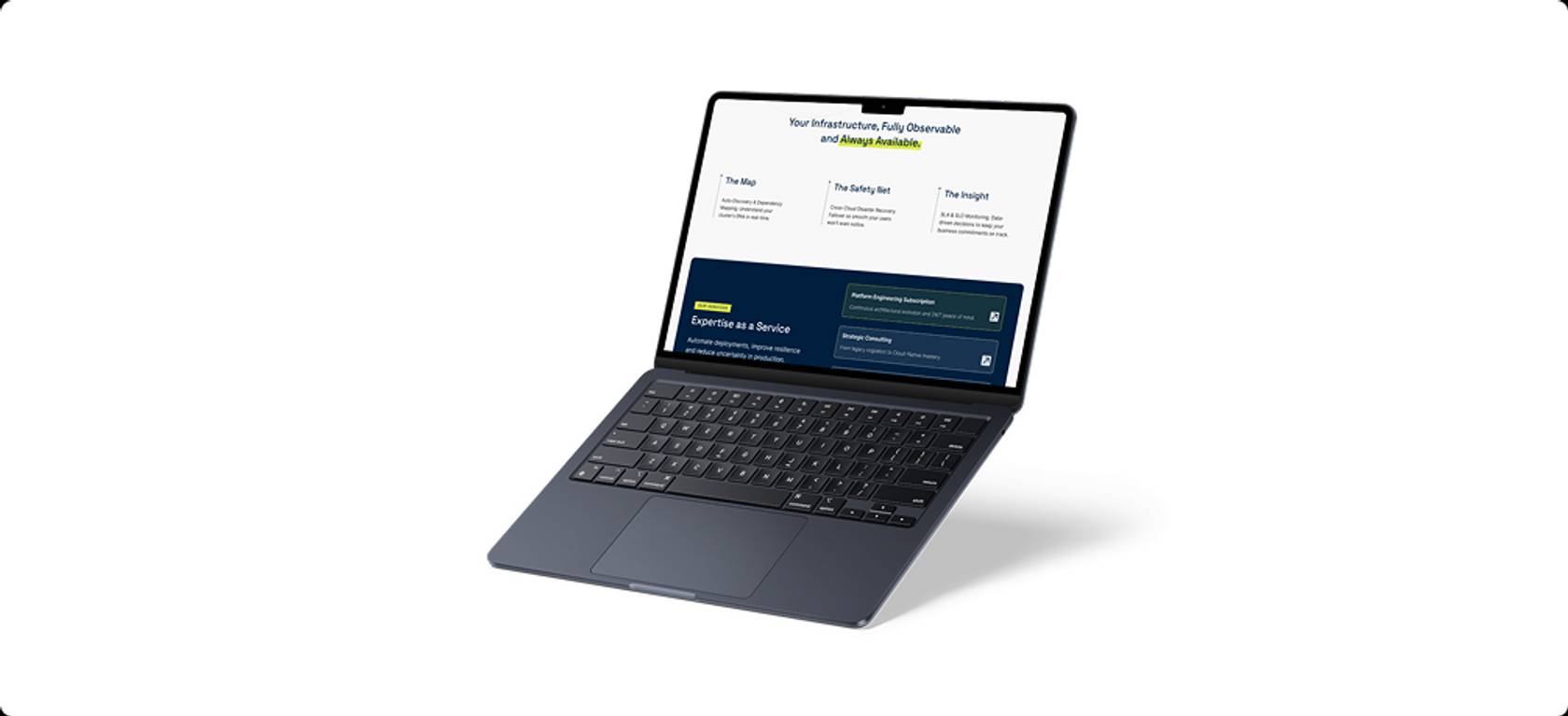 El rediseño del logotipo parte de conceptos como modularidad, observabilidad y control, fundamentales en la construcción y operación de infraestructuras. La paleta cromática, dominada por el chalk con acentos en lima y navy, aporta solidez, contraste y diferenciación dentro de un entorno SaaS homogéneo.