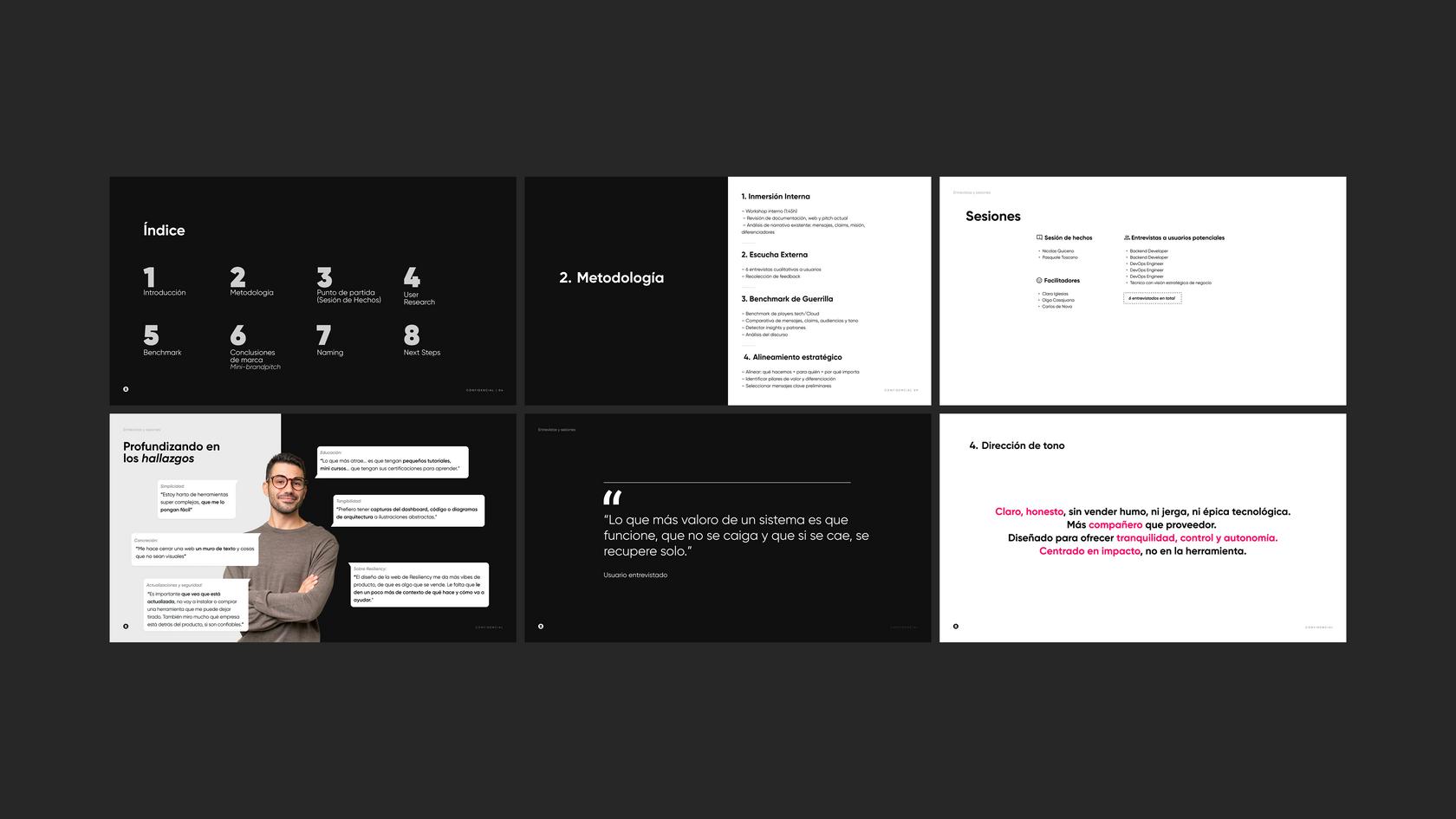 Esta fase nos permitió identificar patrones claros: qué valoran, qué esperan de un partner tecnológico y cómo debe sonar una marca que trabaja a su lado.