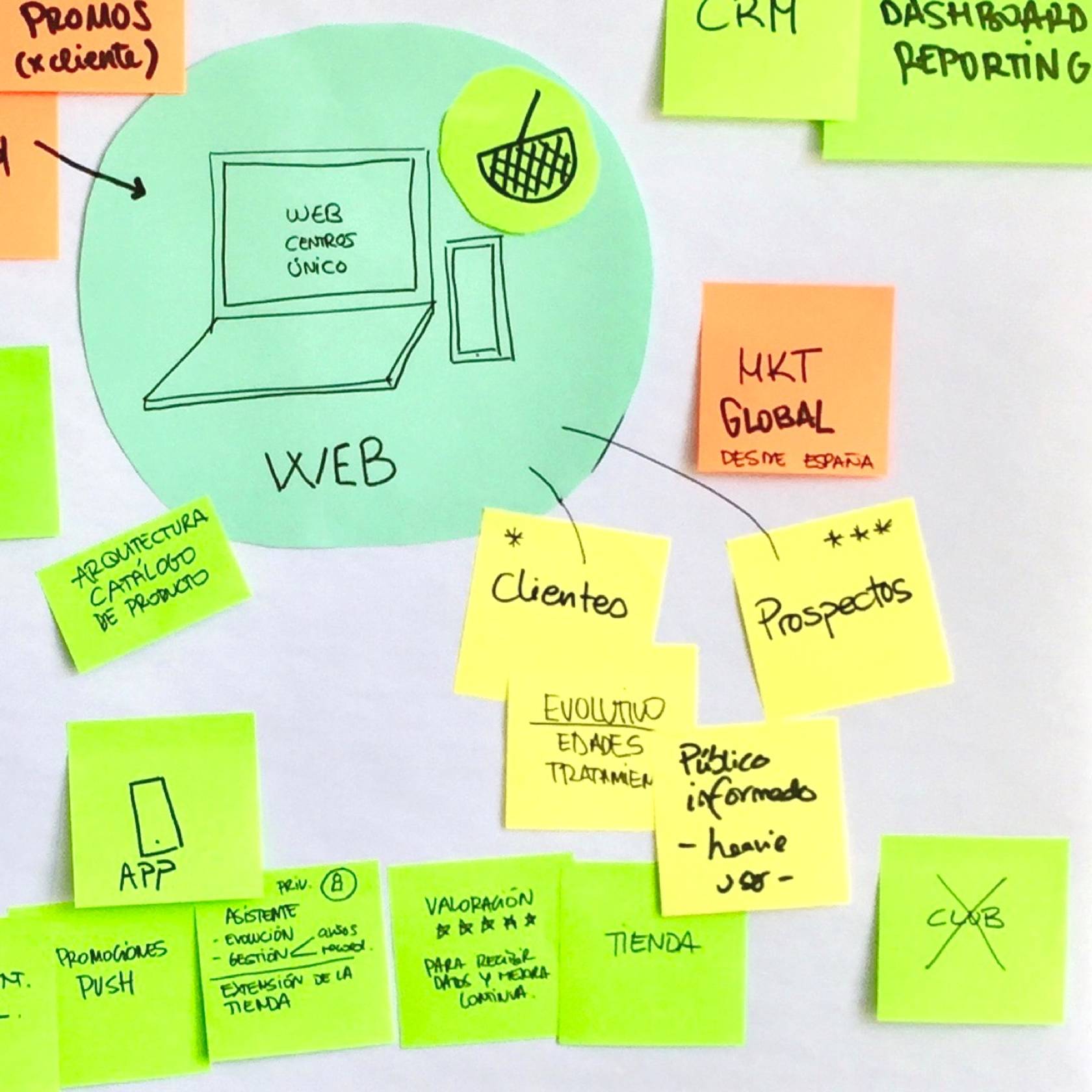 Analizamos las conclusiones de entrevistas a grupos que había realizado Centros Único a clientes actuales y potenciales, para profundizar en sus motivaciones, necesidades y temores. También realizamos un estudio detallado sobre la situación actual del ecosistema de productos digitales y un benchmark de la competencia.